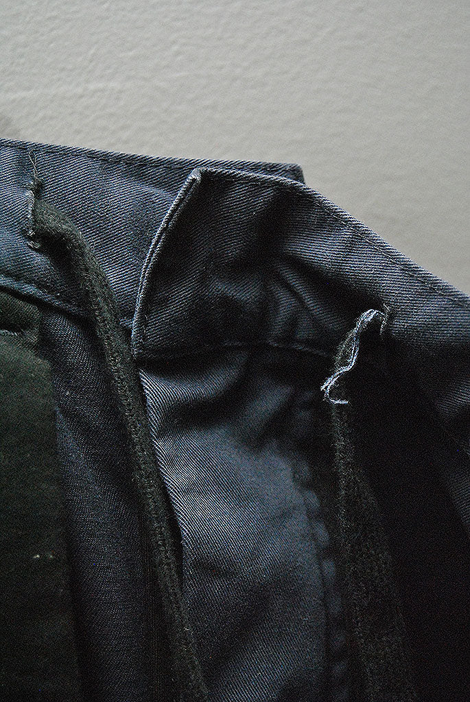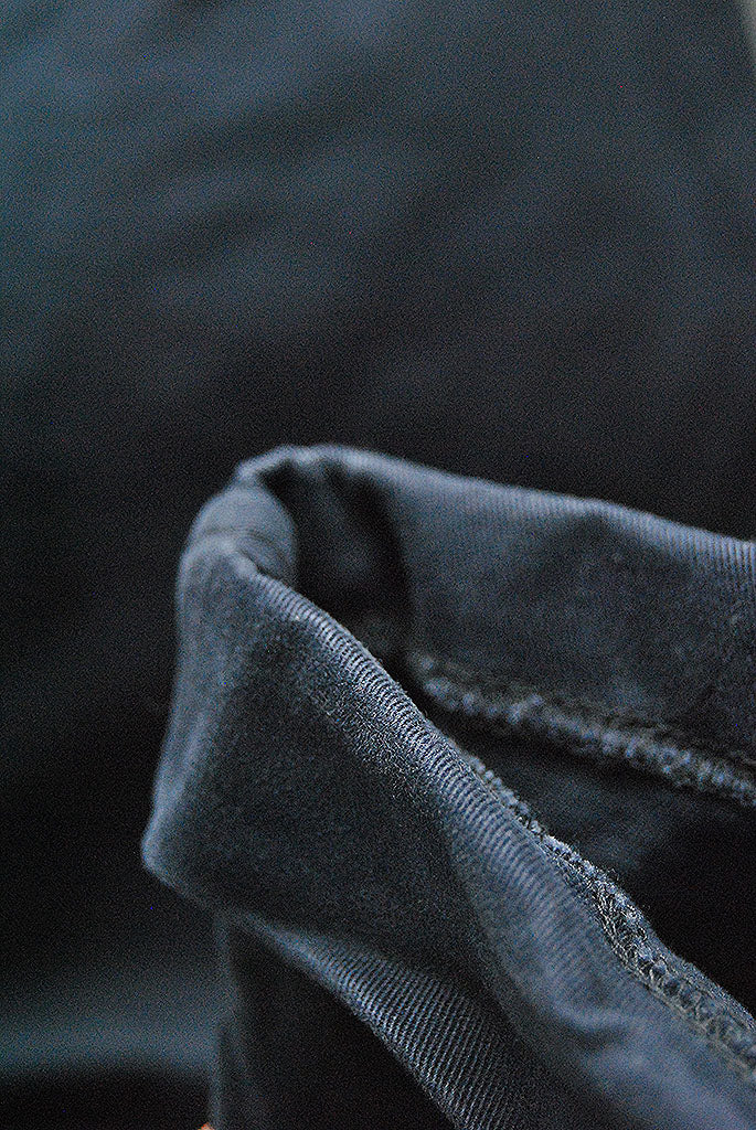 ストリングでウエストをサイズ調整可能なイージー仕様。裾はダブル。