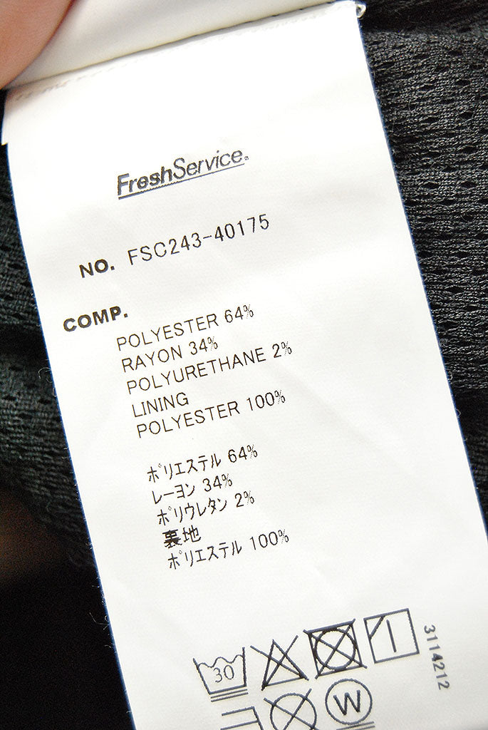 ポリエステル64%、ビスコース34% スパンデックス2%のストレッチの入った生地を使用。