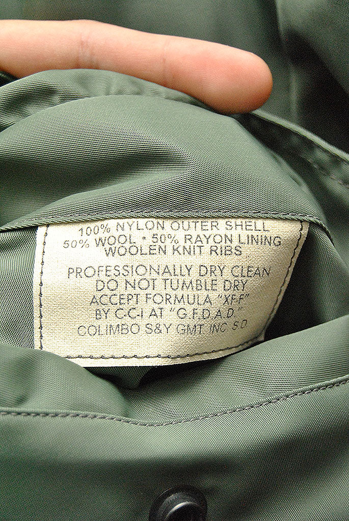 表地はナイロンツイル、裏地はウールとレーヨンのサテンを使用。