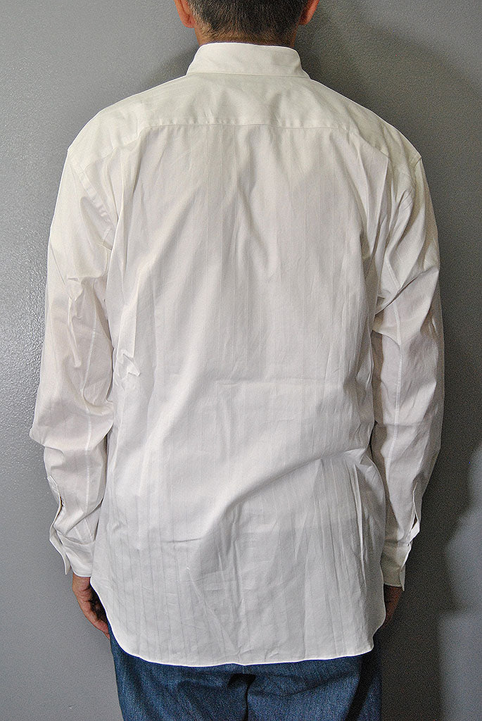 薄いストライプのコットン生地の上からブラックの生地をチェックに縫い付けています。