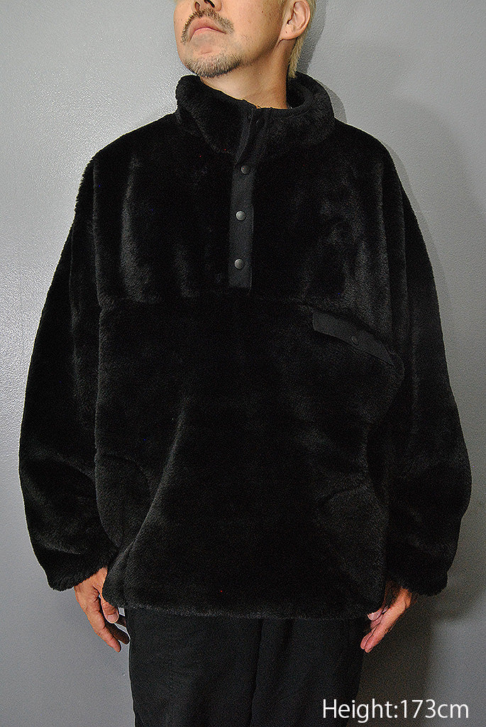 素材はポリエステル100%の毛足の長いファー素材を表現した生地を使用。
