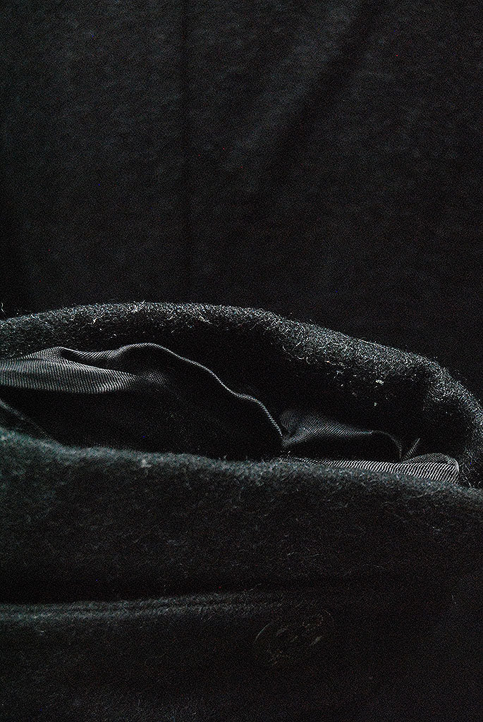ウール90%、ナイロン10%の縮絨のメルトン生地を使用。キュプラの裏地付き。