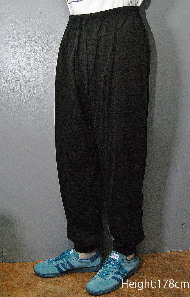 ウエストのストリングでサイズ調節可能です。裾にはゴムが通っています。