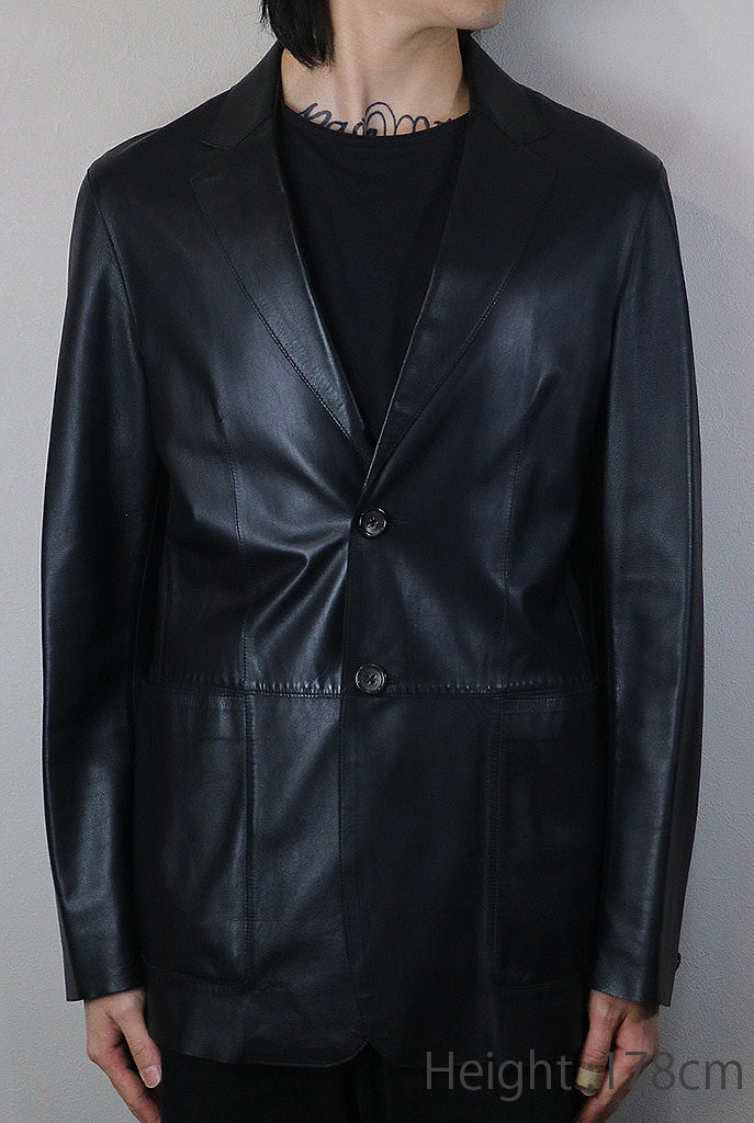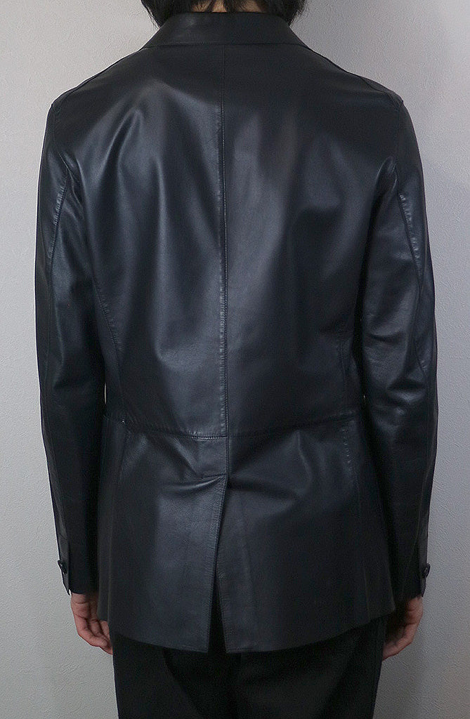 シンプルで扱いやすいシングル2B仕様のレザーテーラードジャケット。