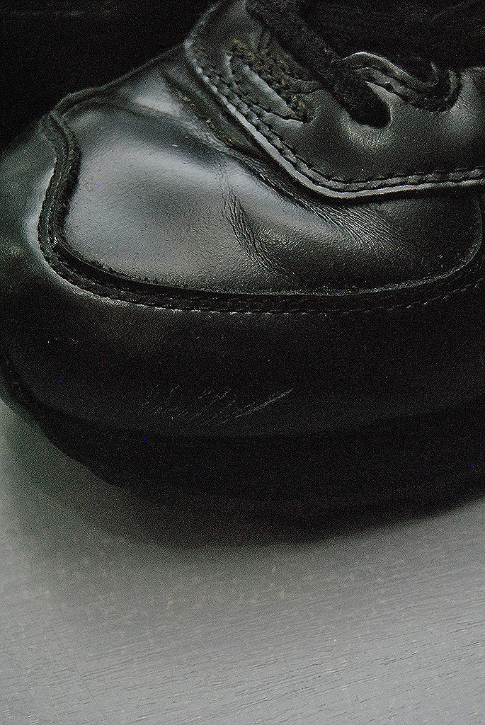 ヒールタブにeyeのブランドロゴが型押しされています。