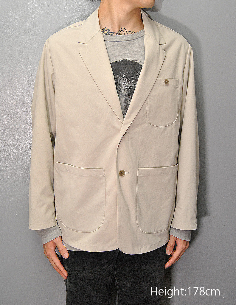 PWA定番のクラシックなデザインのラペル型ジャケットでゆったりとしたオーバーサイズでテーラードジャケットながらカジュアルな印象。