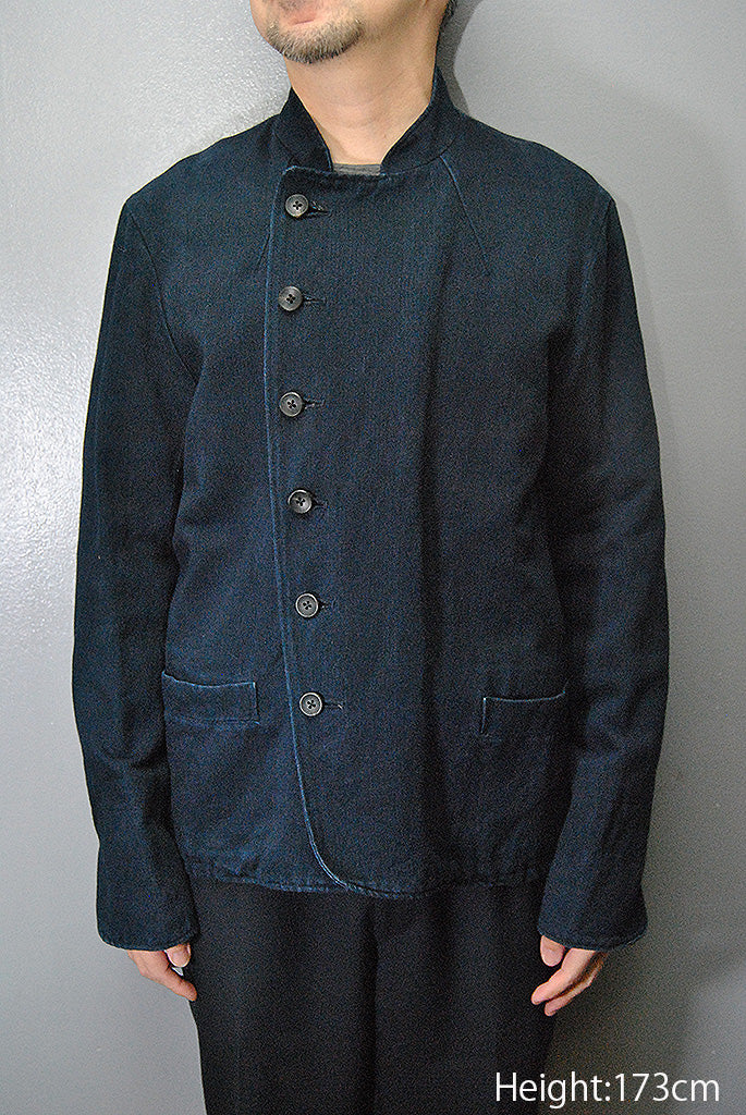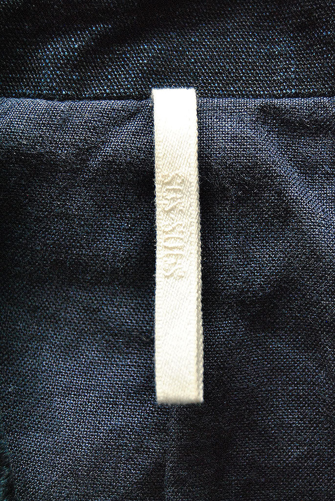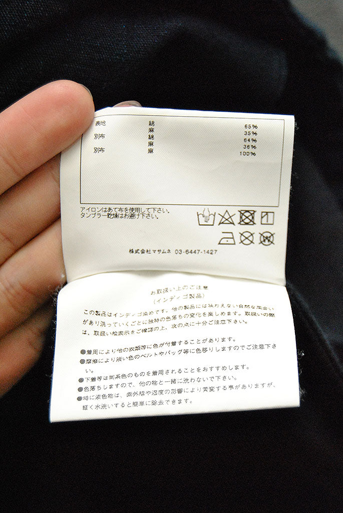 素材はコットン65% リネン35%のインディゴのヘリンボーン生地を使用