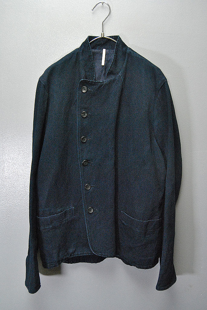 特徴的なスタンドカラー、フロントの前あわせとダブルカフスがポイント。