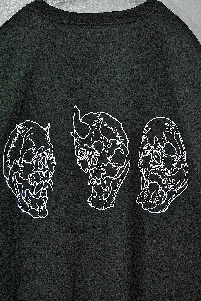 フロントにはロゴネーム、バックにはスカルプリントが施されております。
