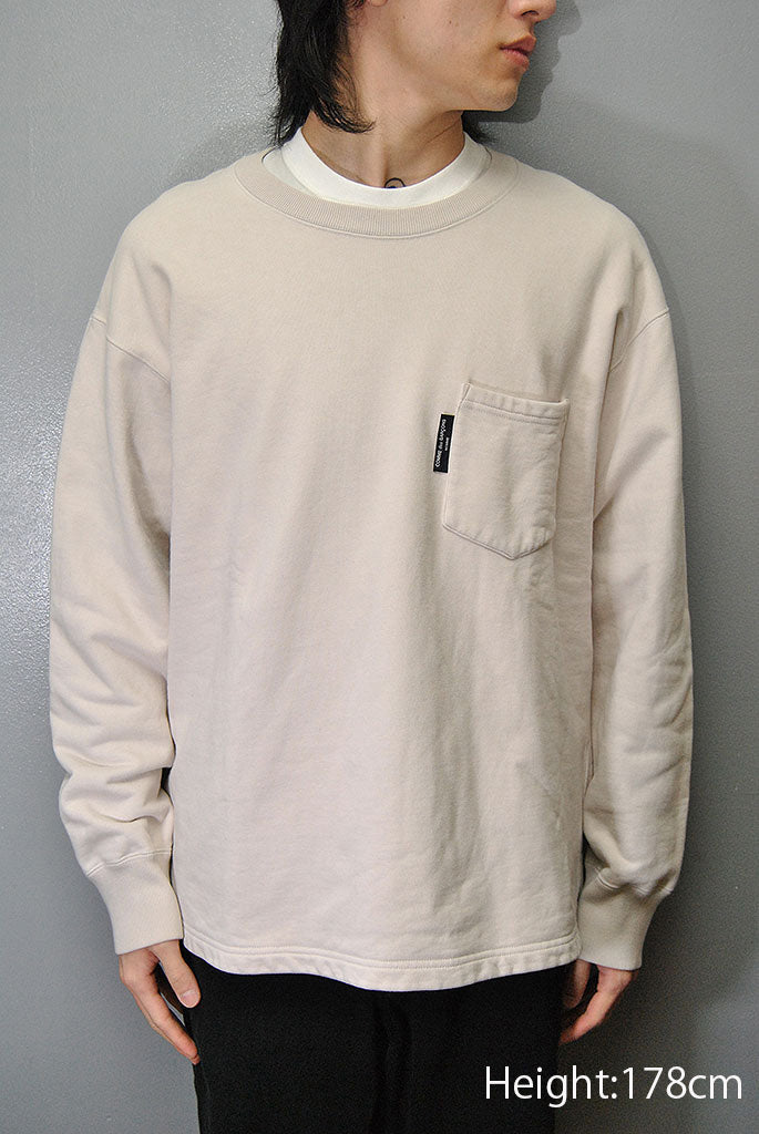 胸にピスネームとポケット付きで裾リブなしのロンTシルエット。サイドはスリットになっています。
