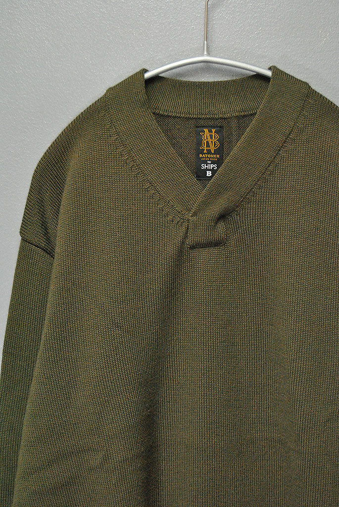 BATONER × Begin × SHIPS (バトナー/ビギン/シップス) 畔編みVネックコマンドセーター。