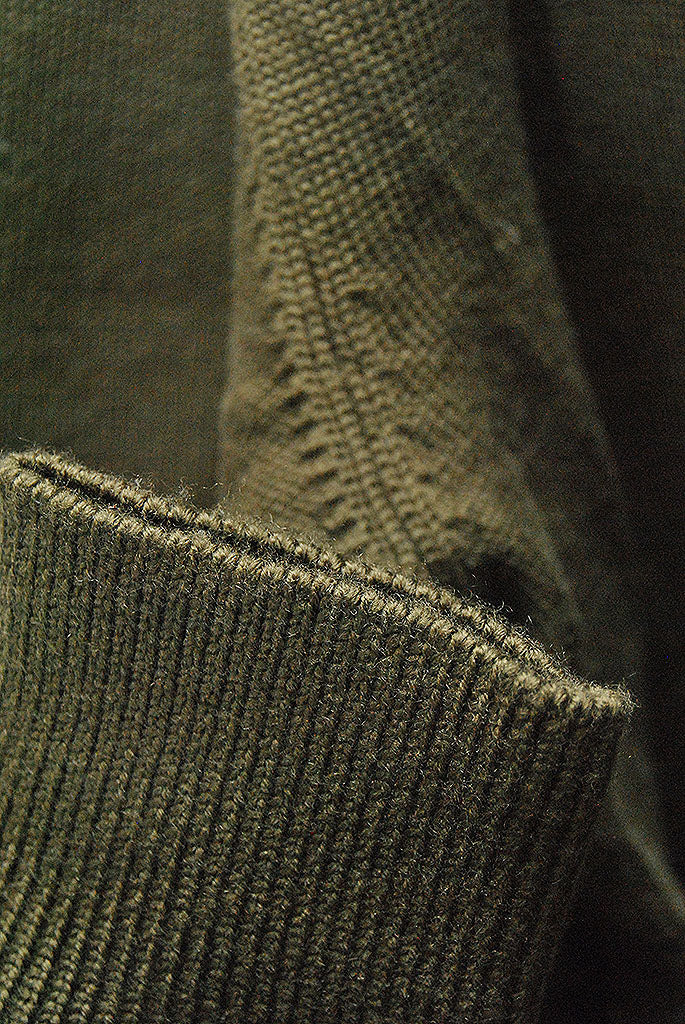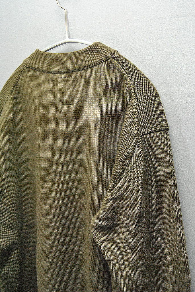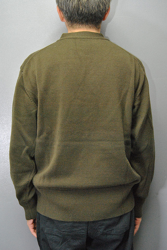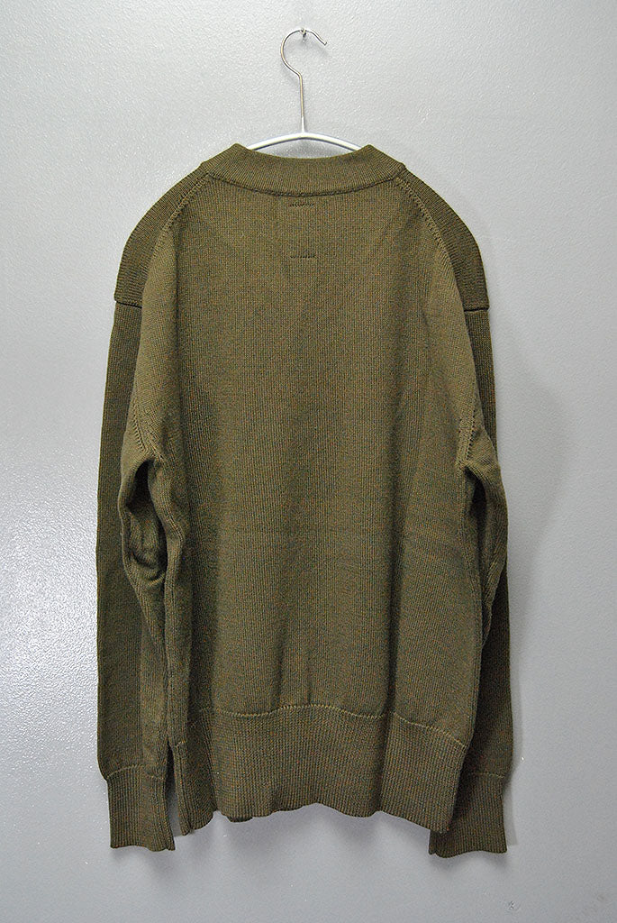 ミリタリーのニットをデザインソースにし無地のシンプルなデザインで襟元はVネック仕様。